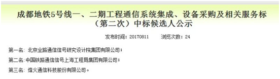 近日,成都地鐵5號線一、二期工程通信系統(tǒng)集成、設(shè)備采購招標(biāo)結(jié)果揭曉,中國通號集團(tuán)北京全路通信信號研究設(shè)計院有限公司攜手廣東創(chuàng)電科技有限公司中標(biāo),創(chuàng)電科技將承擔(dān)交流電源屏和UPS電源系統(tǒng)項目。